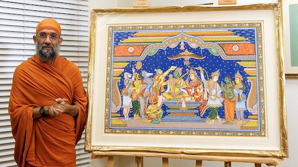 Also held online for the first time was our annual Sattwadharman Benefit. Our sangha made the most of the circumstances to come together around a new format for this annual benefit. Over 40 magnificent works of art were displayed up close and personal – on screens at home – and, in a new feature this year, devotees were invited to learn in-depth about the curatorial and production process of the Fellowship Archives in a documentary featuring His Holiness Swami Vidyadhishananda.